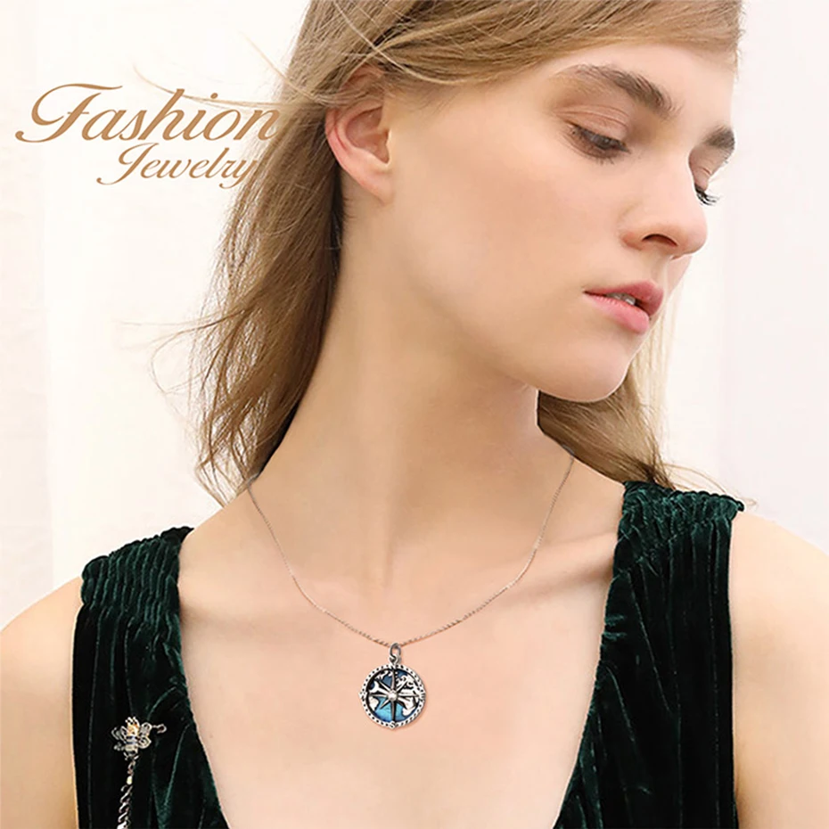 Product Name: YFN 925 فضة السفر الملاحة قلادة خريطة البوصلة امرأة قلادة قلادة سلسلة فضية النساء 925 العصرية مجوهرات هدية