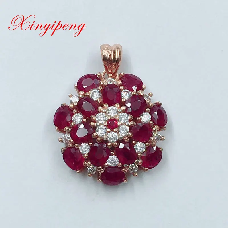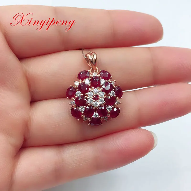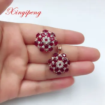 Product Name: شين Yipeng S925 فضة مطلي روز الذهب مطعمة ريال الطبيعية مجوهرات من الياقوت الأحمر مجموعة قلادة عصابة هدية الزفاف غرامة للنساء