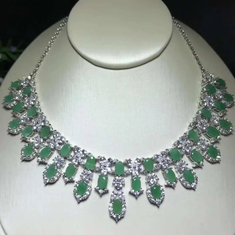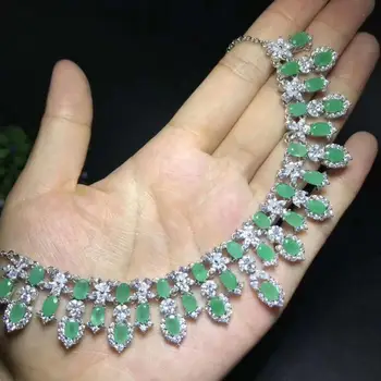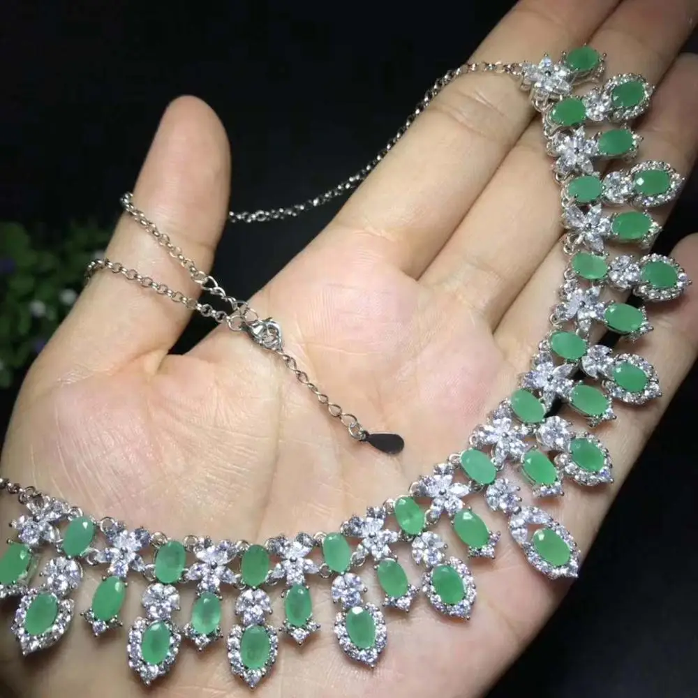 Product Name: 100% الطبيعية والحقيقية الزمرد قلادة الصلبة S925 فضة الزمرد قلادة للنساء اللون جوهرة حجر غرامة مجوهرات