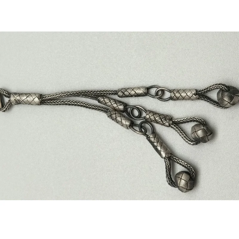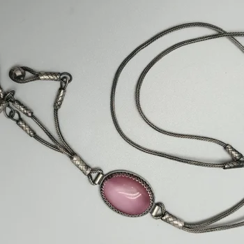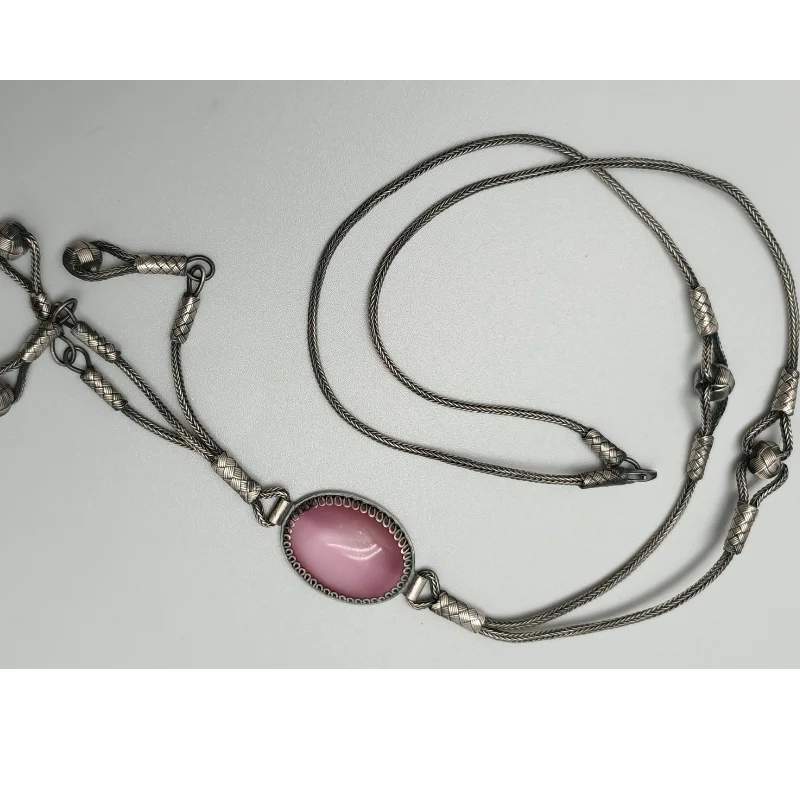 Product Name: عقد من طرابزون كازاز مصنوع يدويًا من الفضة الاسترليني المؤكسدة عيار 1000 مع قلادة مرصعة بحجر أرجواني مع شرابات مزيّنة بالخرز