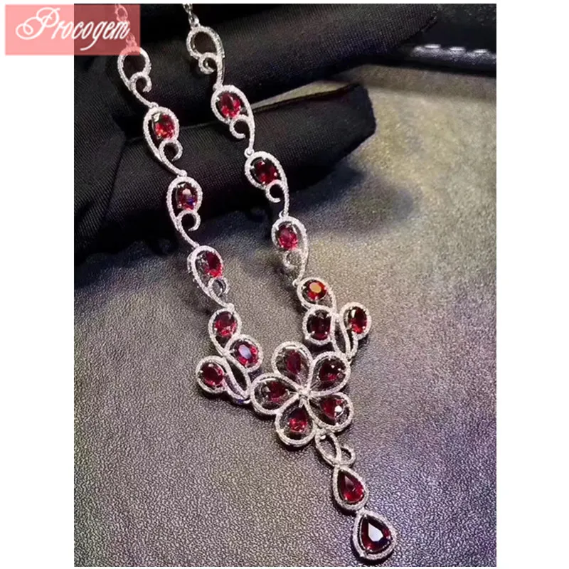 Special Offer دلاية محلاه بالياقوت الطبيعي القلائد للنساء 3x4 ملليمتر 925 فضة حقيقية الأحجار الكريمة القلائد حزب الكلاسيكية غرامة مجوهرات #179 Discount 25% Today!