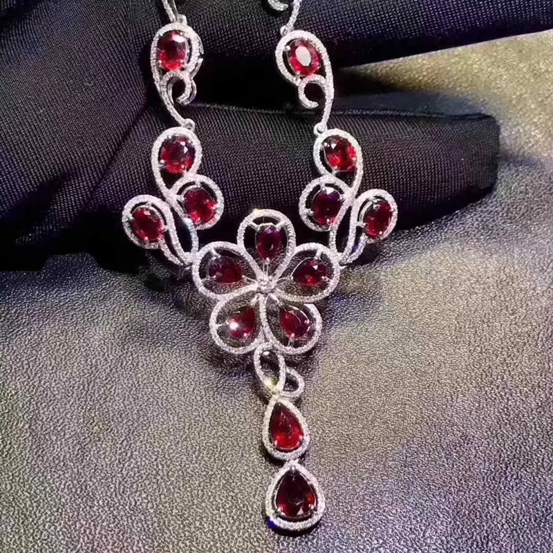 Product Name: دلاية محلاه بالياقوت الطبيعي القلائد للنساء 3x4 ملليمتر 925 فضة حقيقية الأحجار الكريمة القلائد حزب الكلاسيكية غرامة مجوهرات #179