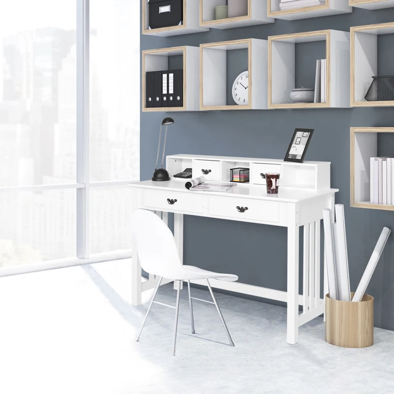 Product Name: الحديث مكتب المنزل الكتابة مهمة الكمبيوتر مكتب أنسنة مقبض 4-درج خشب متين الساق 2-الطبقة تصميم منضدة قابلة للإزالة