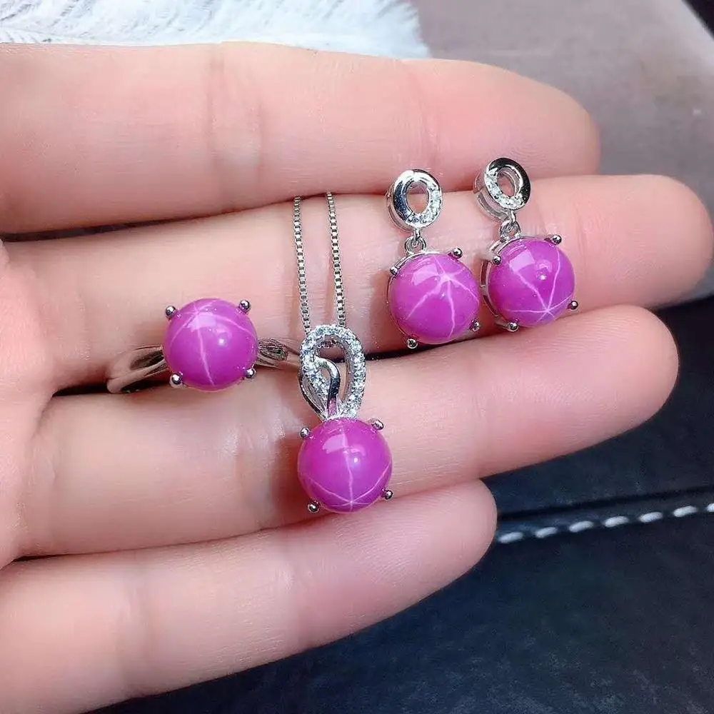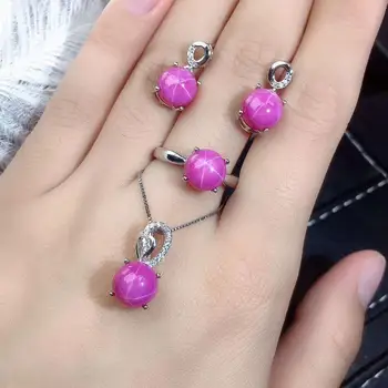Product Name: ريال الطبيعية مجوهرات من الياقوت الأحمر مجموعة الطبيعية ريال روبي 925 فضة 1 قطعة قلادة ، 1 قطعة حلقة ، 2 قطعة القرط