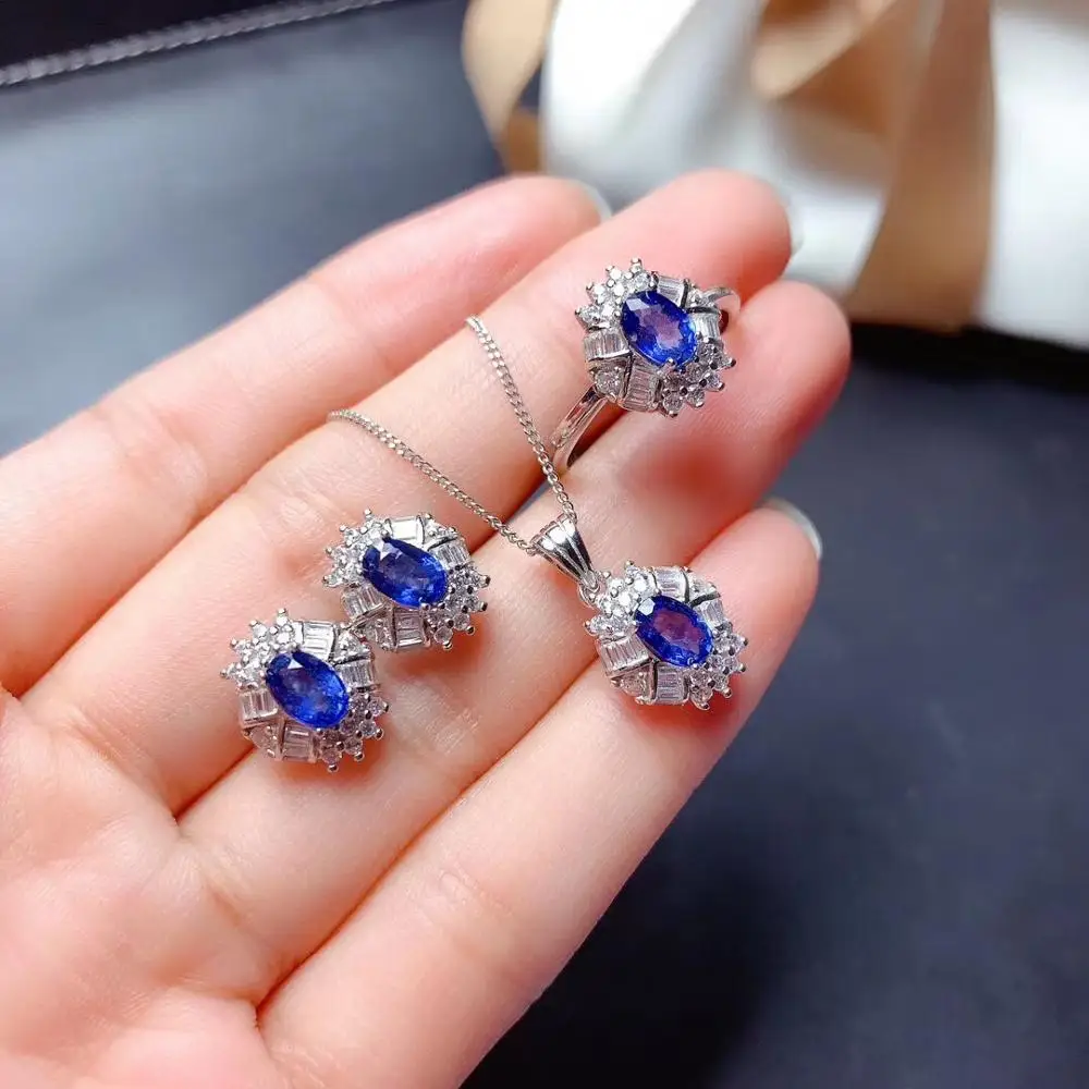 Special Offer أفضل هدية ريال الطبيعية الياقوت طقم مجوهرات الياقوت الطبيعي الحقيقي 925 فضة 1 قطعة قلادة ، 1 قطعة حلقة ، 2 قطعة القرط Discount 5% Today!