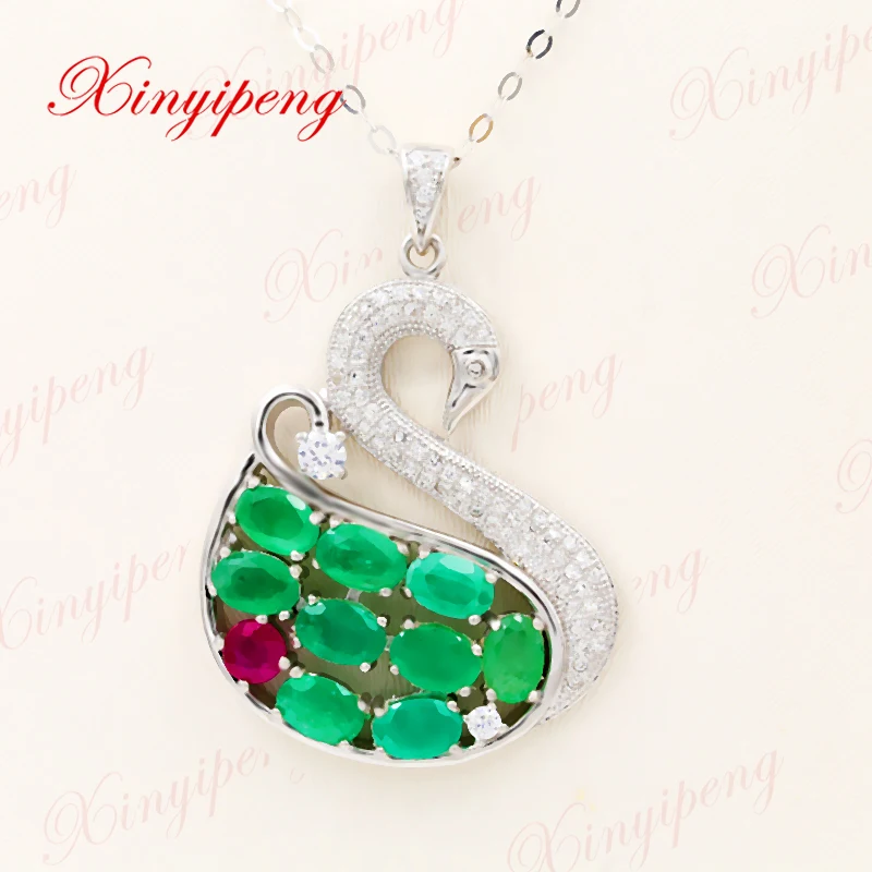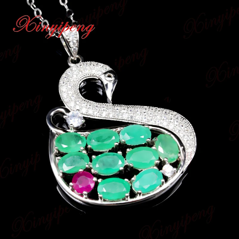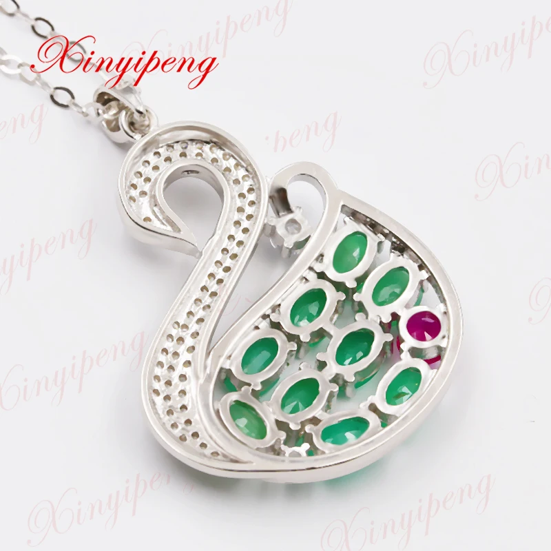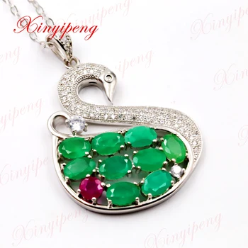 Product Name: قلادة من شين يي بنغ 925 مصنوعة من الفضة المرصعة بالزمرد الطبيعي مع روبي على شكل بجعة للنساء