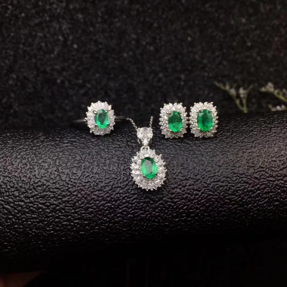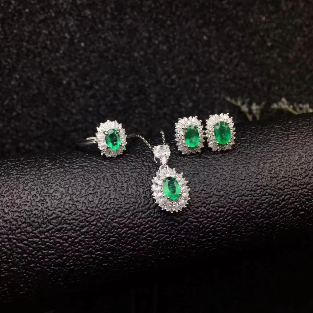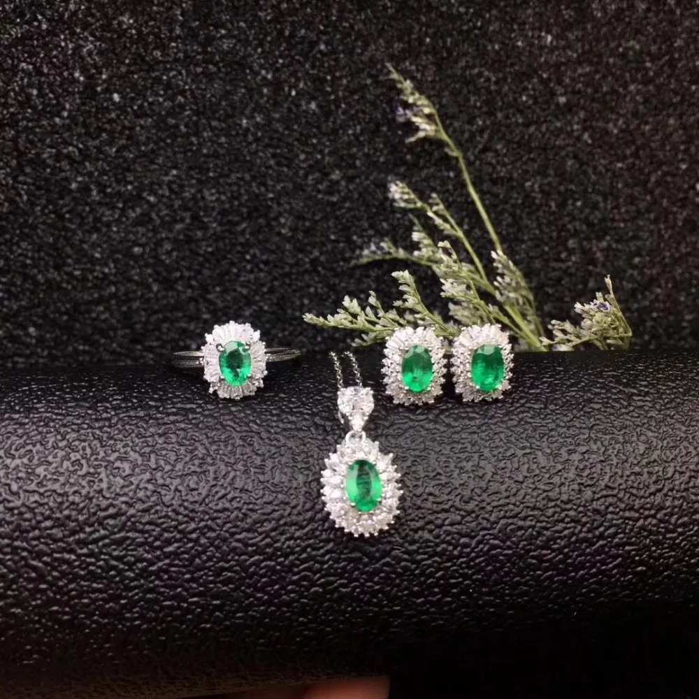 Product Name: الطبيعية الخضراء الزمرد جوهرة قلادة عصابة أقراط الطبيعية الأحجار الكريمة طقم مجوهرات 925 الفضة موضة مستديرة ديانا نساء مجوهرات حفلة