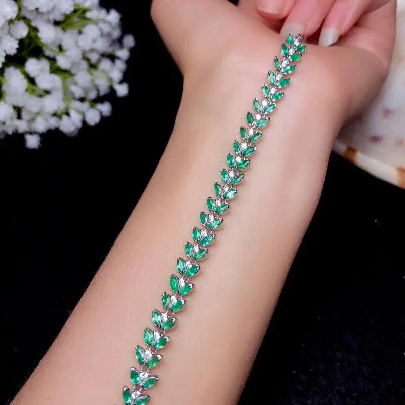 Product Name: الزمرد الطبيعي سوار ، أحدث الأزياء ، 925 فضة ، العديد من الأحجار الكريمة ، جميلة اللون ، السيدات سوار