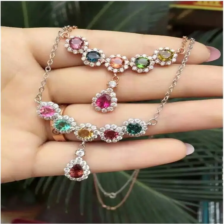 Special Offer التورمالين قلادة شحن مجاني تورمالين طبيعي 925 فضة الأحجار الكريمة الملونة 5*5 5 قطعة 1 قطعة 5*7 مللي متر جوهرة Discount 25% Today!