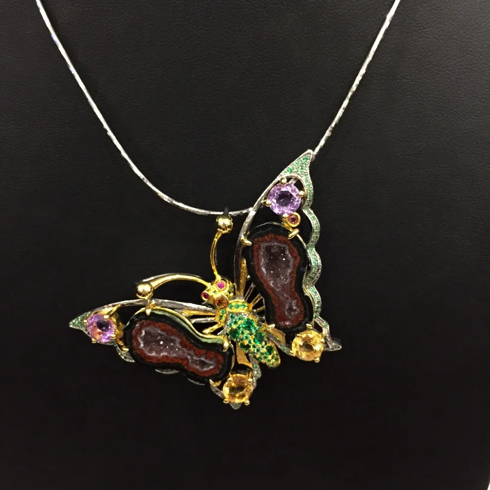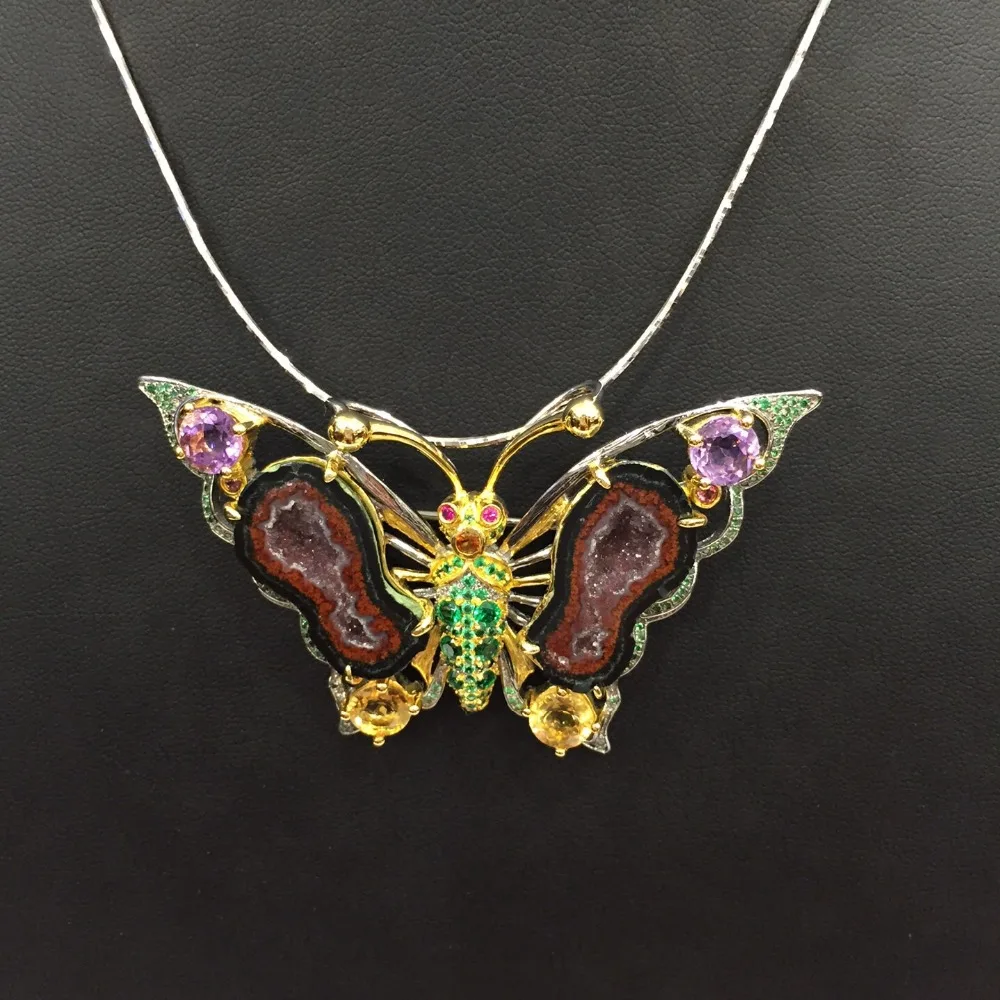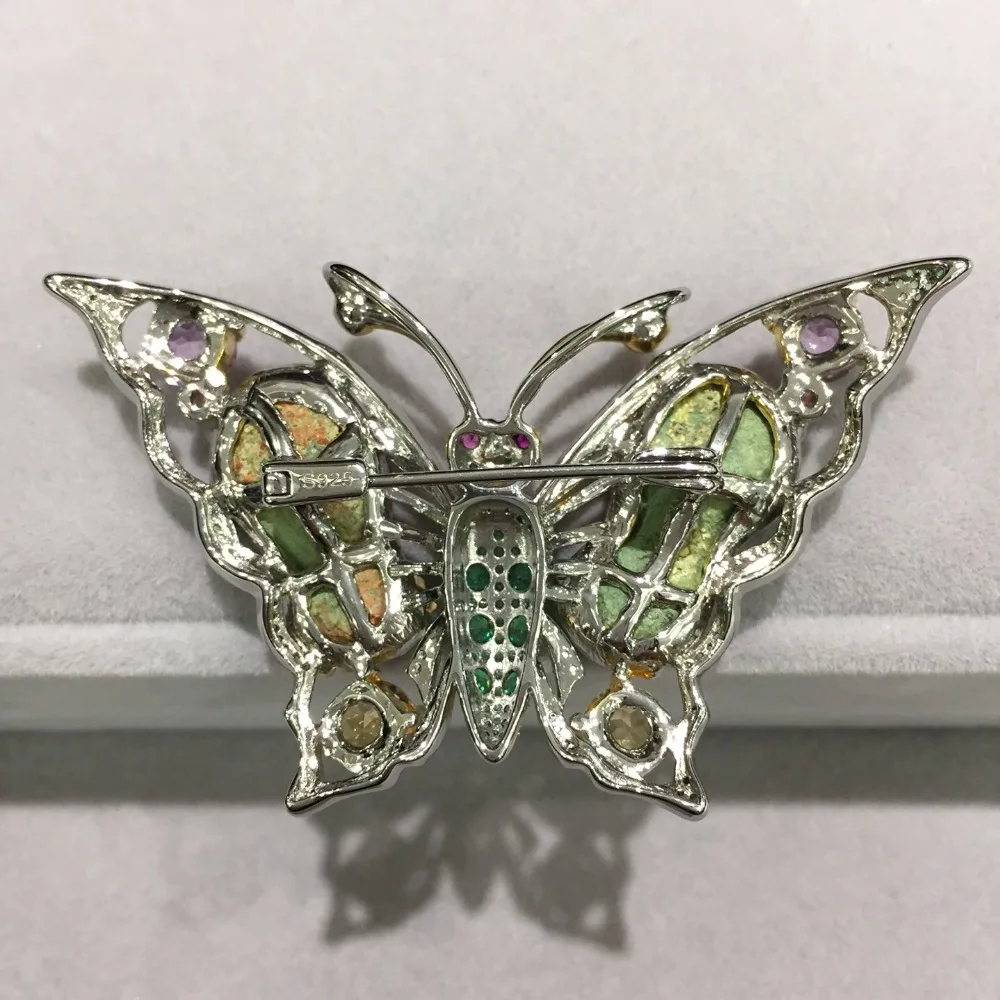 Special Offer قلادة بروش على شكل فراشة فريدة للجنسين تستخدم بشكل مزدوج بروش كريستال عقيق طبيعي من الفضة الإسترليني عيار 925 مع سيترين الجمشت Discount 0% Today!