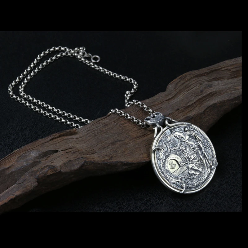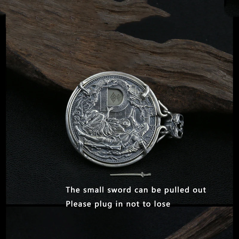 Special Offer قلادة كلاسيكية بالسيف المقدس من الفضة الخالصة 925 بحروف مجانية من الجلد الأسود حبل مجوهرات قلادة للرجال والنساء P11 Discount 40% Today!