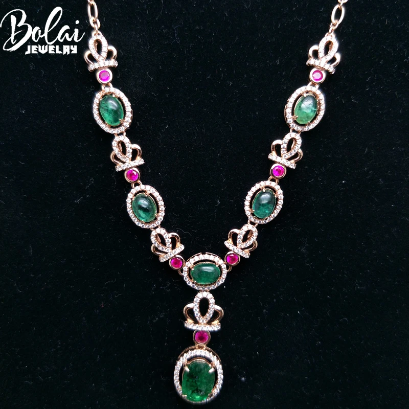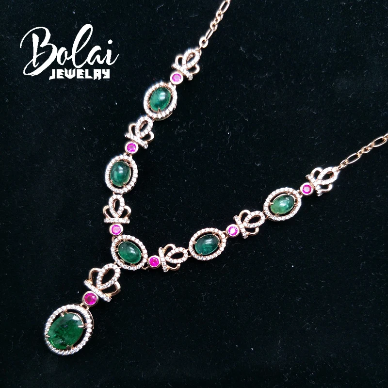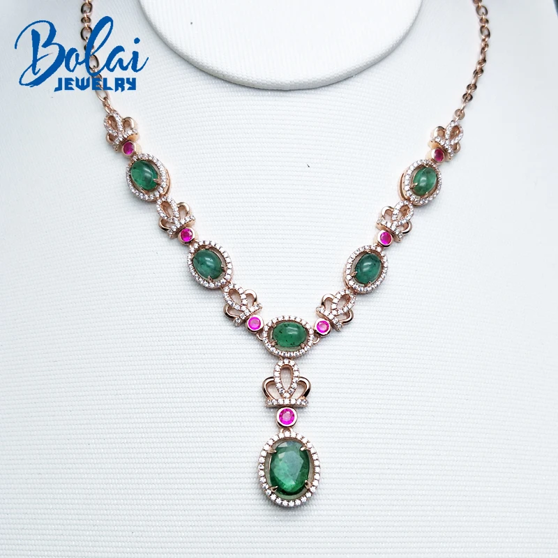 Product Name: Bolaijewelry ، الفاخرة النبيلة أنيقة تاج حزب قلادة الطبيعية الزمرد 925 روز الفضة الاسترليني الفضة غرامة مجوهرات كهدية