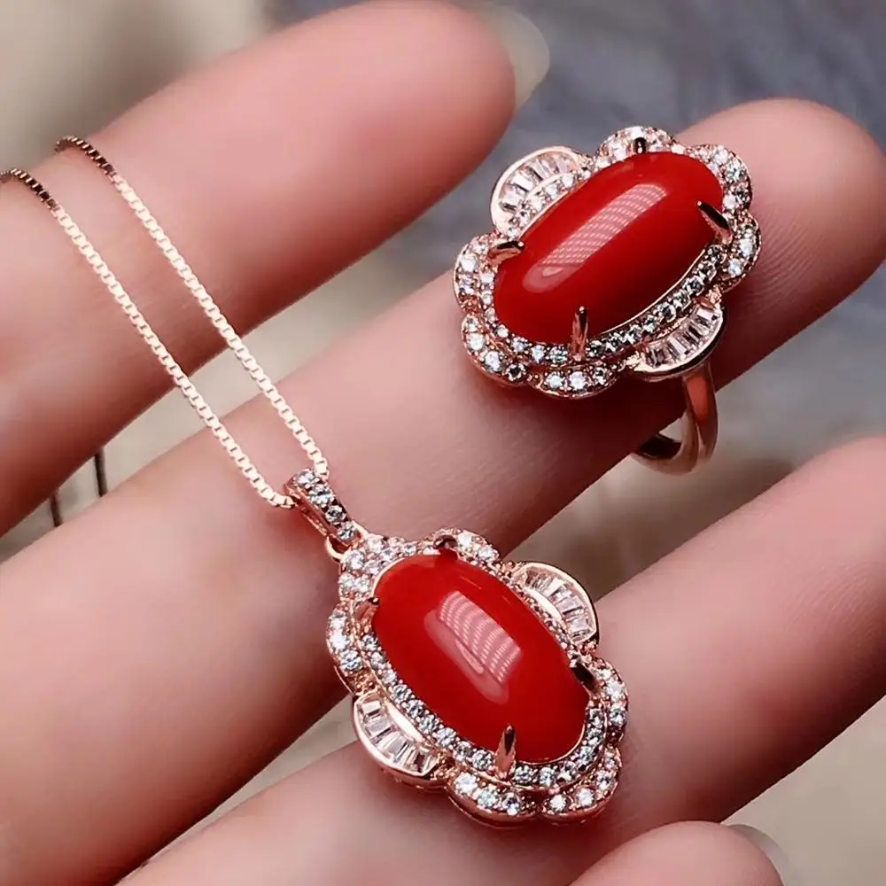 Special Offer KJJEAXCMY غرامة مجوهرات 925 فضة مطعمة الطبيعية المرجان الأحمر قلادة عصابة الإناث مجموعة Detection كشف الدعم Discount 22% Today!