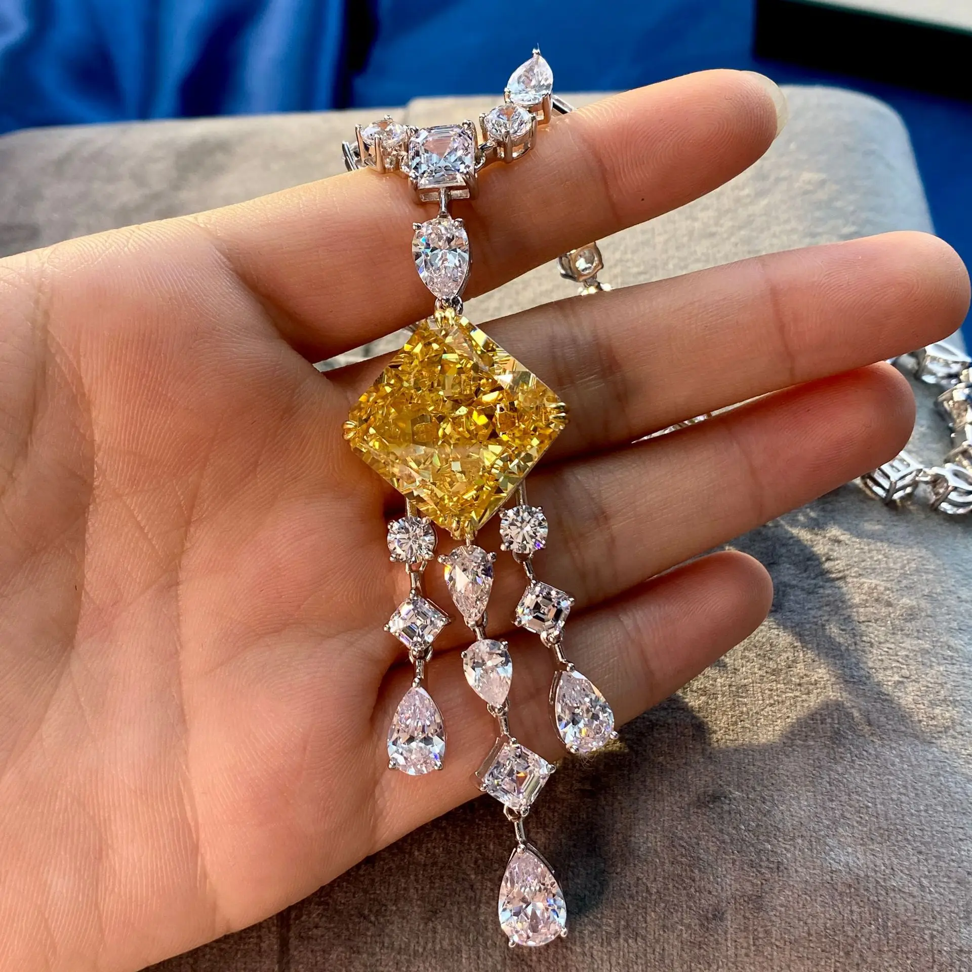 Product Name: PANSYSEN 100% 925 فضة 18 مللي متر مكون مويسانيتي 5A الزركون سيترين الأحجار الكريمة شرابة قلادة ساحرة القلائد الجميلة مجوهرات