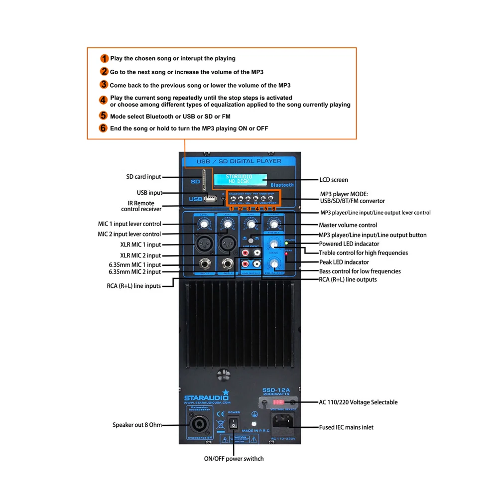 Product Name: STARAUDIO المزدوج 12 "2000 واط DJ بالطاقة النشطة PA BT نظام مكبرات الصوت DJ تقف 4CH UHF المحمولة سماعة لاسلكية ميكروفون SSD-12A