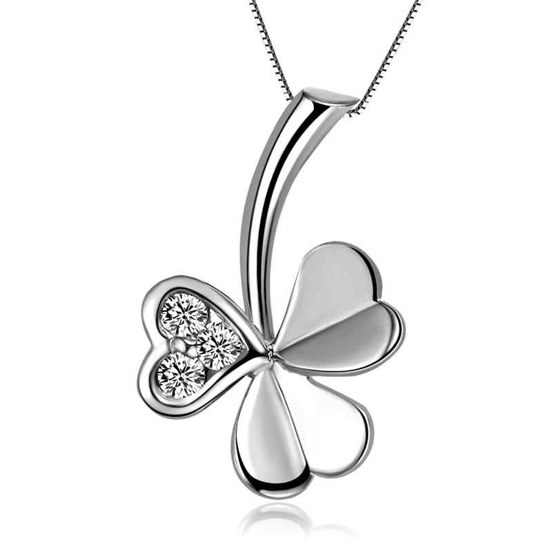 Product Name: Zocai الماركة ارتفع الذهب محظوظ البرسيم 18 كيلو 0.06 Ct Certified Diamond قلادة مع 925 الفضة الاسترليني سلسلة Nacklace D00221