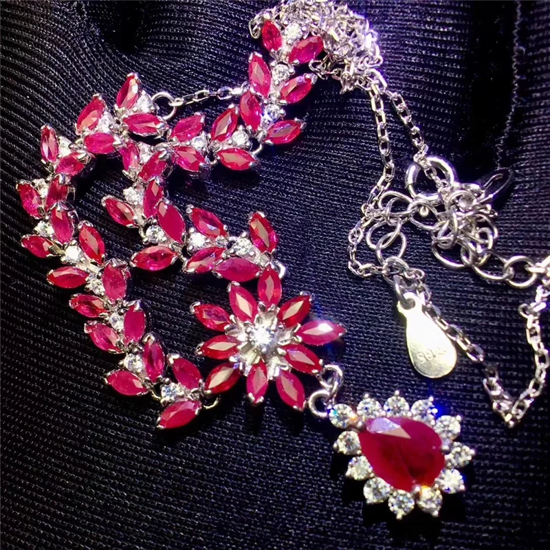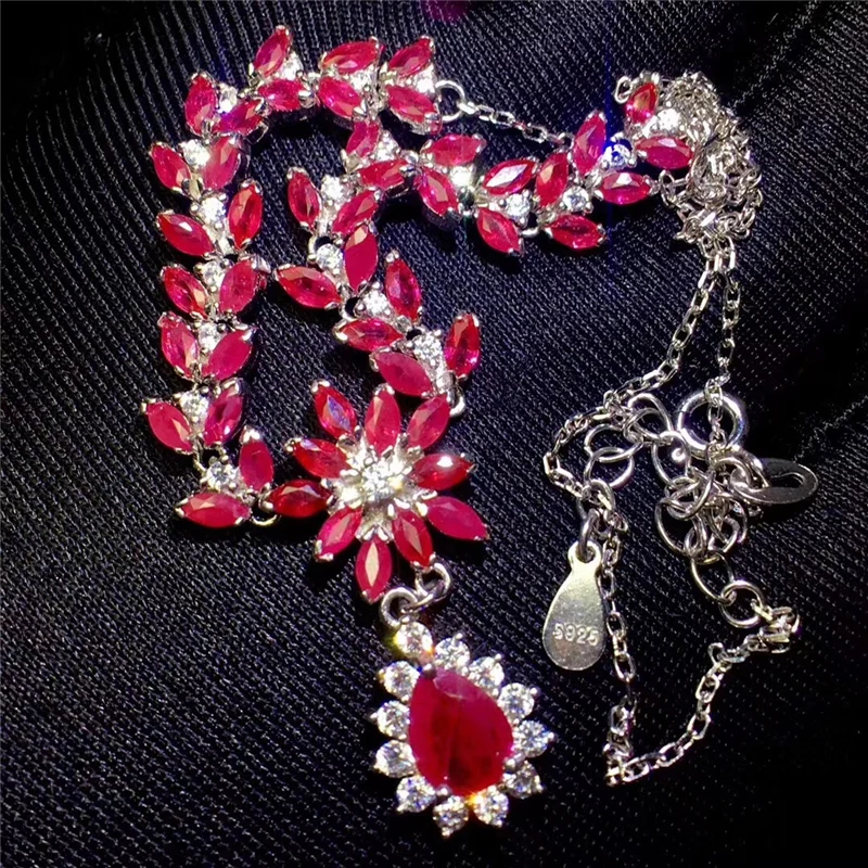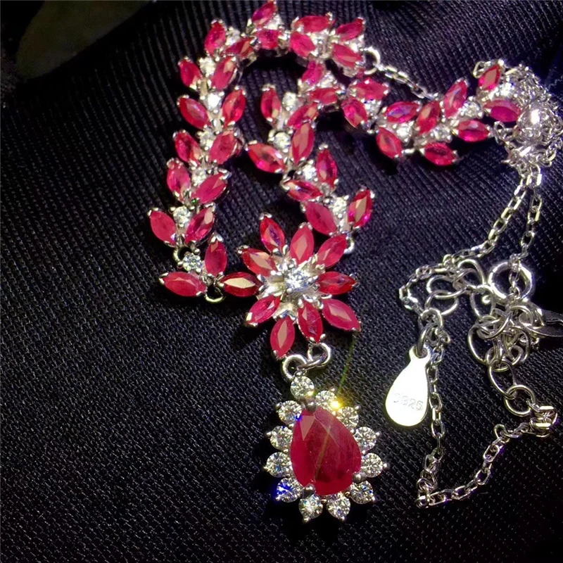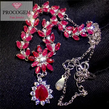 Product Name: دلاية محلاه بالياقوت الطبيعي القلائد للنساء حزب 100% ريال الأحجار الكريمة الفضة 925 18 K الذهب الأبيض مطلي Luurious غرامة مجوهرات #308