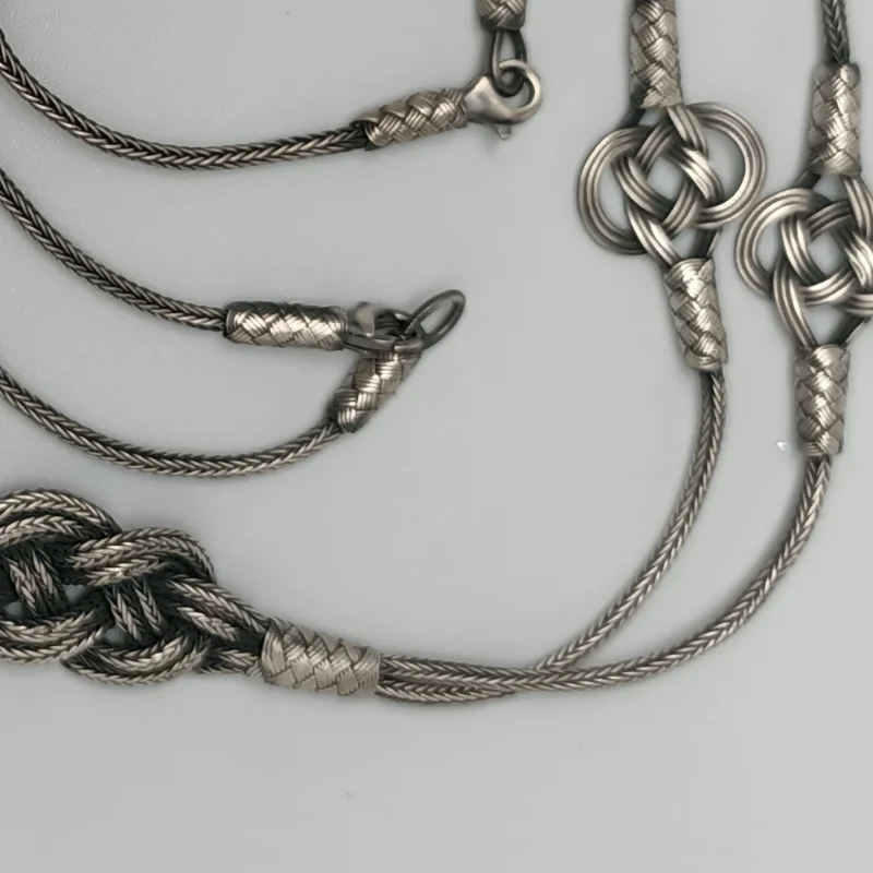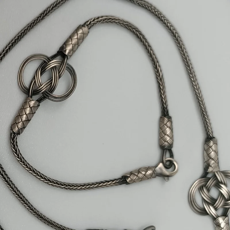 Special Offer سوار وقلادة كازاز من طرابزون مصنوع يدويًا من الفضة المؤكسدة عيار 1000 بقلادة بشراشيب مطرز Discount 15% Today!