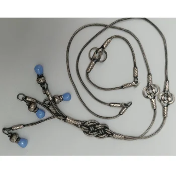 Product Name: سوار وقلادة كازاز من طرابزون مصنوع يدويًا من الفضة المؤكسدة عيار 1000 بقلادة بشراشيب مطرز