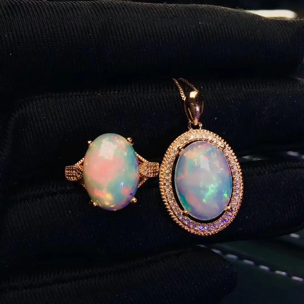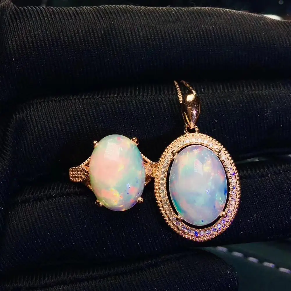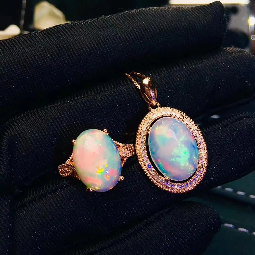 Product Name: 1100% جودة عالية الطبيعية و ريال أوبال طقم مجوهرات العقيق الحقيقي الطبيعي 925 فضة 1 قطعة قلادة ، 1 قطعة حلقة