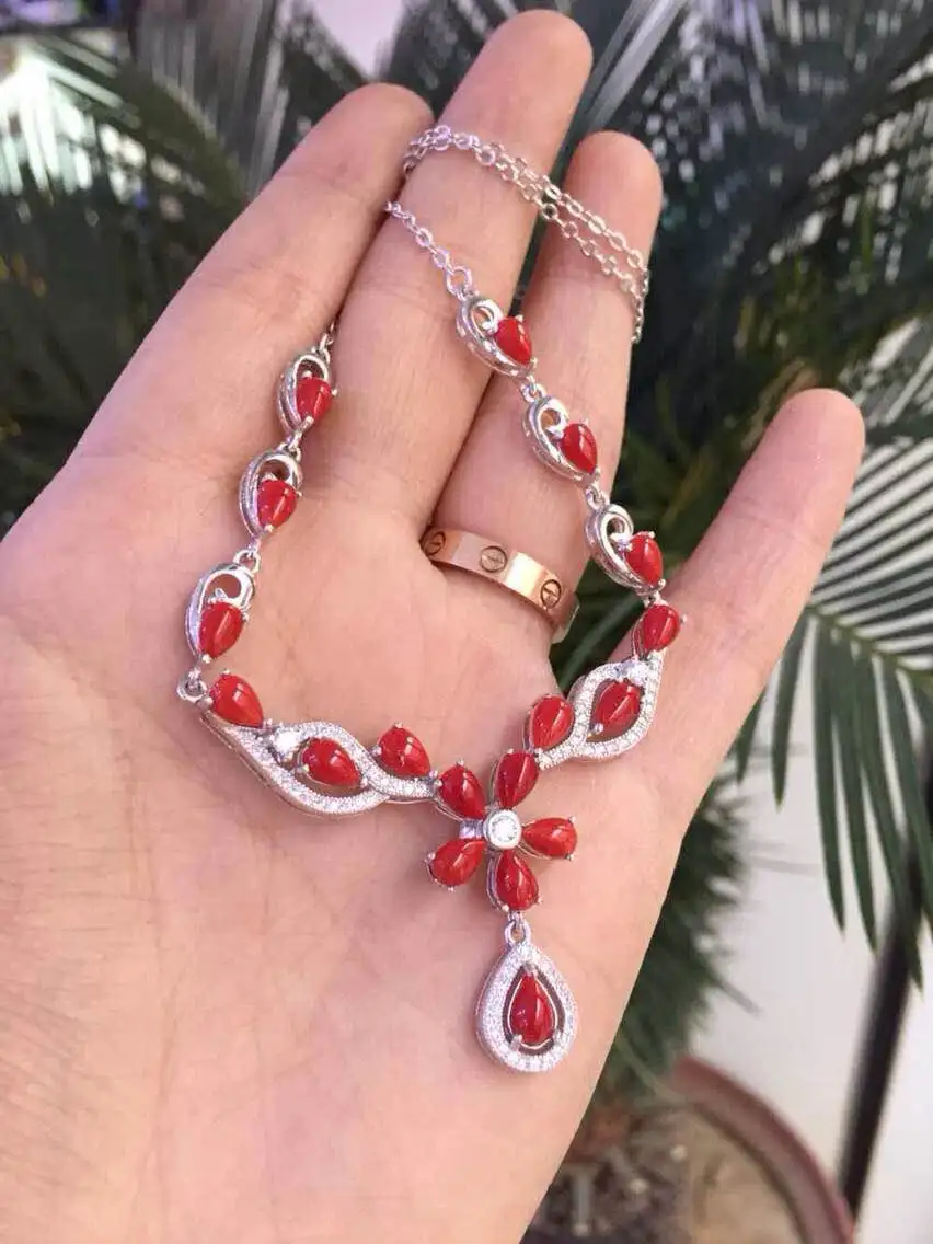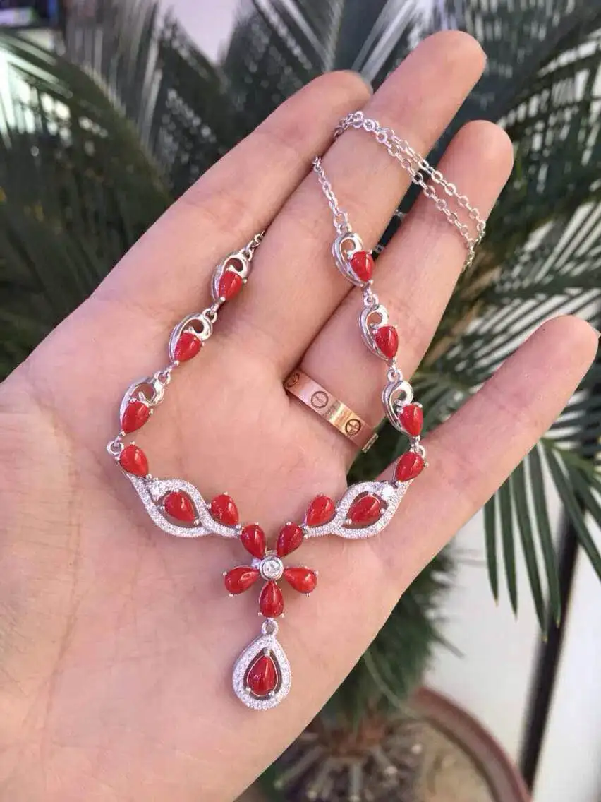 Product Name: الطبيعية المرجان الأحمر قلادة الأحجار الكريمة الطبيعية قلادة قلادة للفتيات النساء السيدات الأزياء الفاخرة الزهور الزفاف غرامة مجوهرات