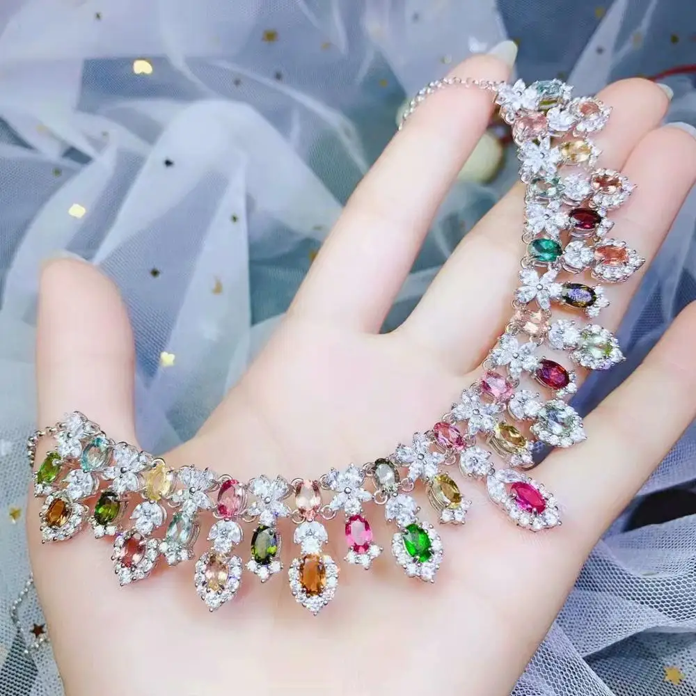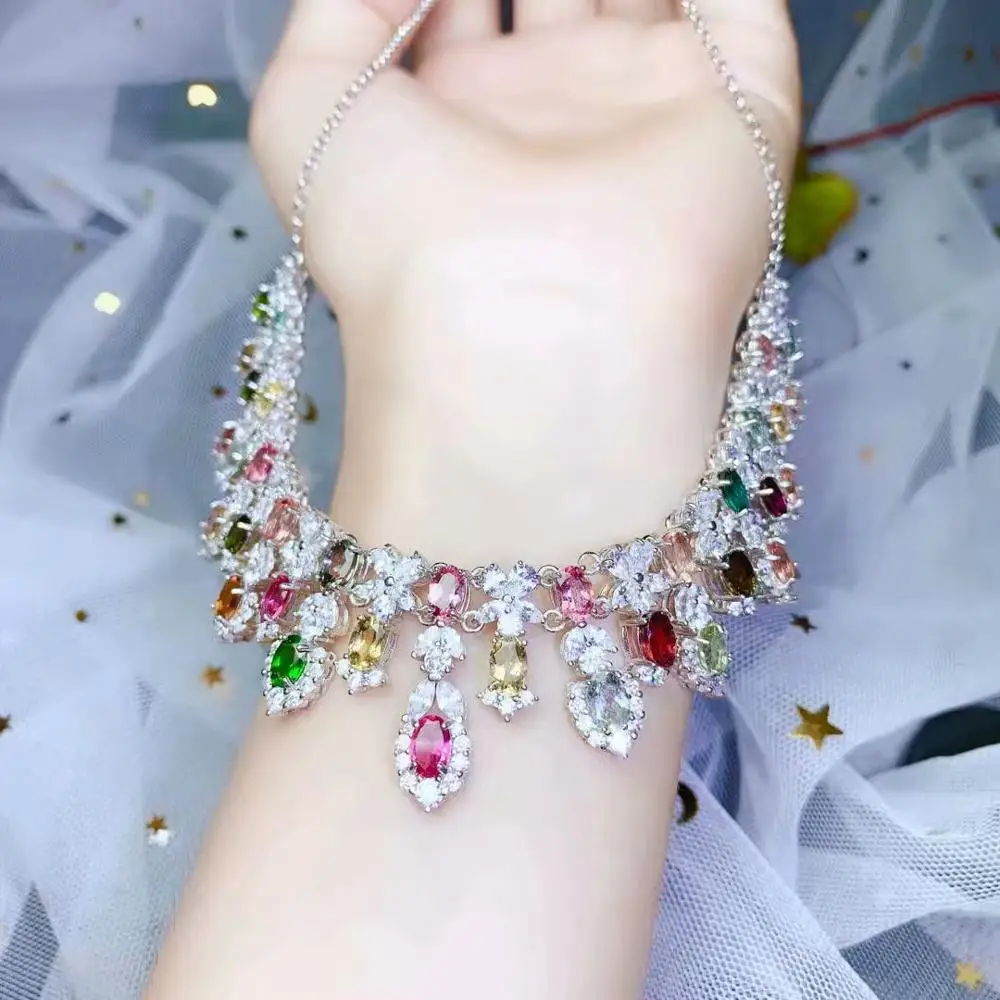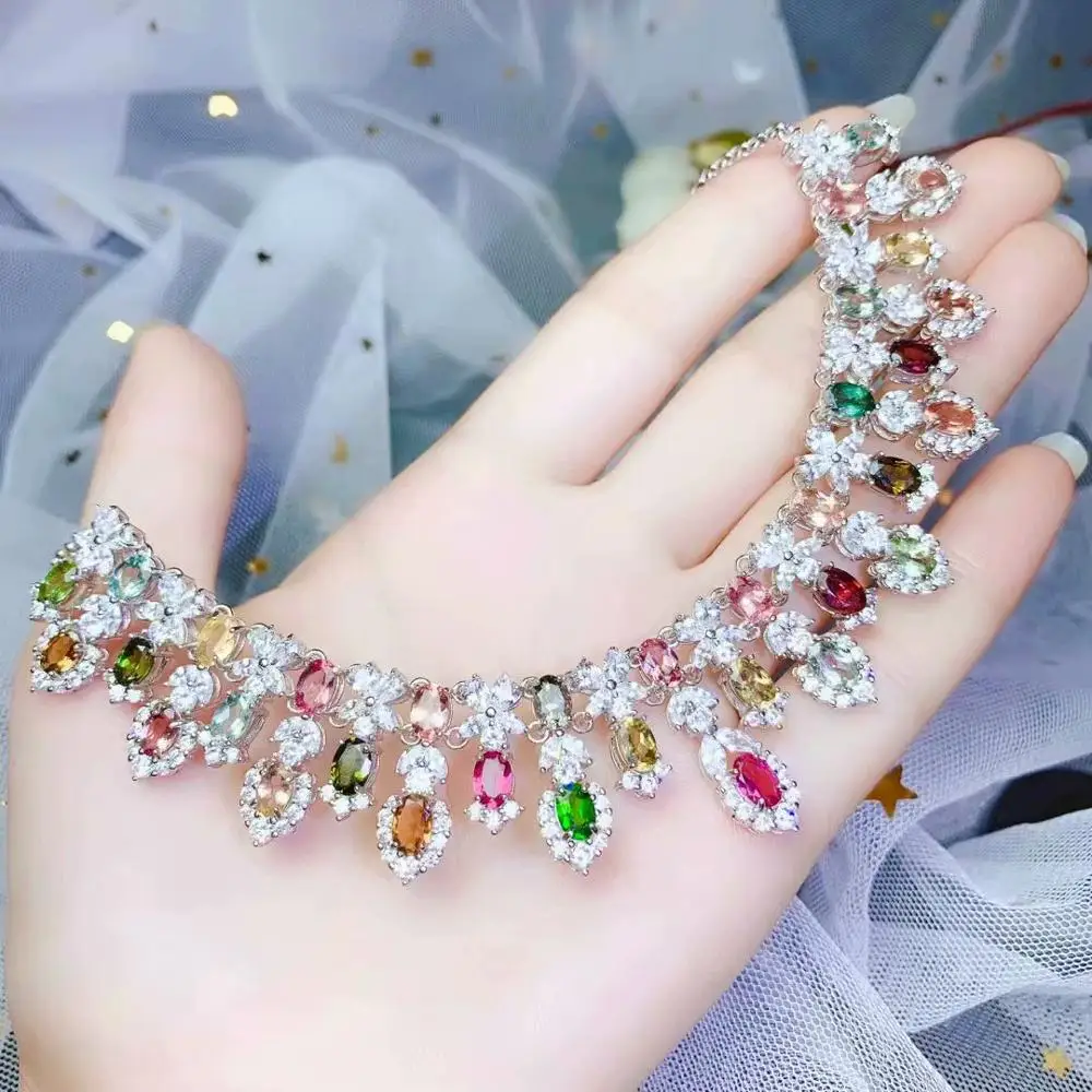 Product Name: حفلة نمط الفاخرة: رشيقة وملونة التورمالين الأحجار الكريمة قلادة للنساء مع الفضة والمجوهرات 2