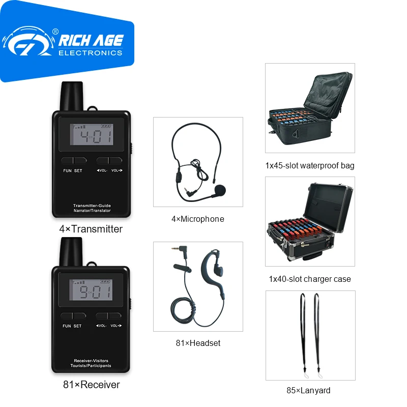 Product Name: نظام دليل سياحي ريتشتيك لاستئجار سماعة 4 مرسلات + 81 مستقبل لمجموعات الرحلات مع ميكروفون مكثف