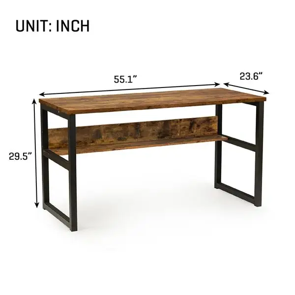 Special Offer في المخزون شحن مجاني الخشب والمعادن الإطار مكتب الكمبيوتر مع رف الكتب الحديثة مكتب المنزل طاولة كتابة الكمبيوتر الكبيرة Discount 43% Today!