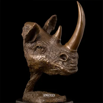 Product Name: مجردة وحيد القرن رئيس النحت تماثيل حيوانات النحاس النحاس نحت الفنون الحرفية الحديثة منضدة المكتب المنزلي الديكور