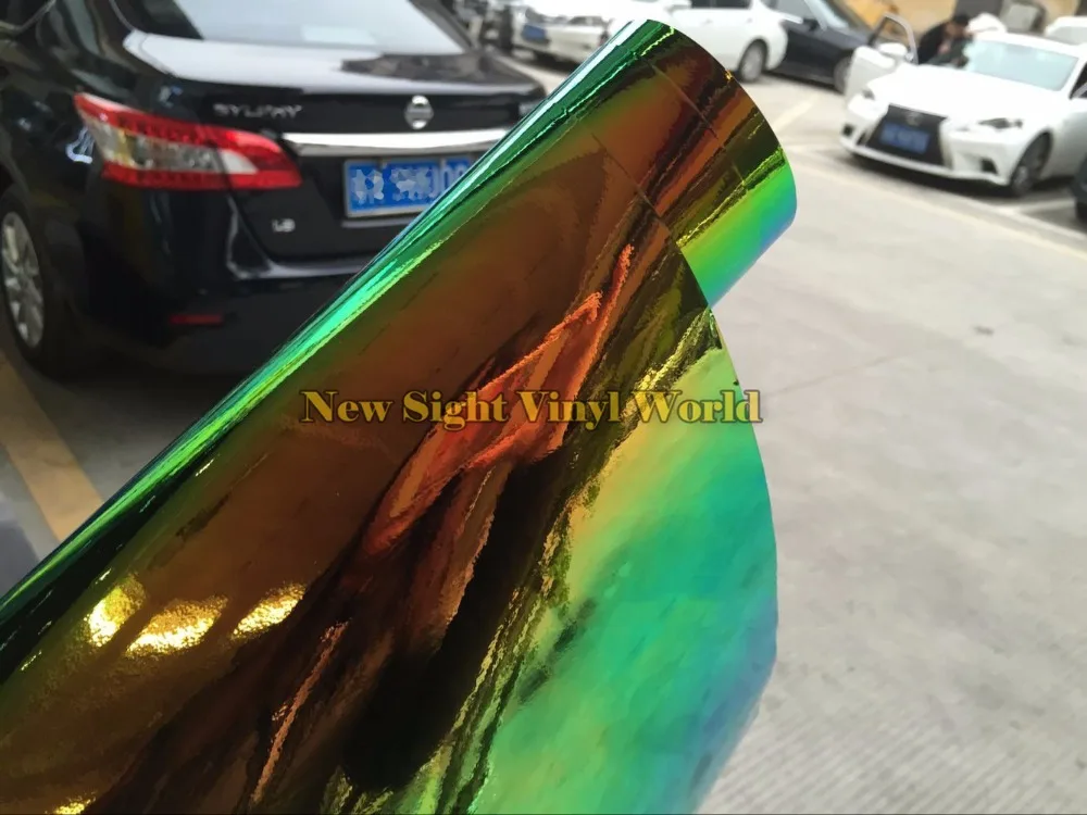 Product Name: أفضل نوعية الذهب الأخضر قوس قزح كروم الفينيل التفاف فيلم قوس قزح لفافة خلات الفينيل فقاعة الحرة لصائق السيارة