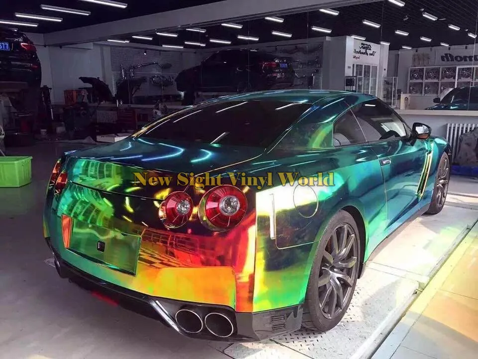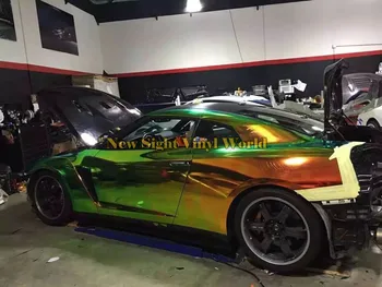 Special Offer أفضل نوعية الذهب الأخضر قوس قزح كروم الفينيل التفاف فيلم قوس قزح لفافة خلات الفينيل فقاعة الحرة لصائق السيارة Discount 8% Today!