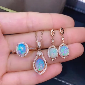 Product Name: الذكرى أفضل هدية أوبال مجموعة عقيق طبيعي طقم مجوهرات الطبيعية ريال أوبال 925 فضة 1 قطعة قلادة ، 1 قطعة حلقة ، 2 قطعة القرط