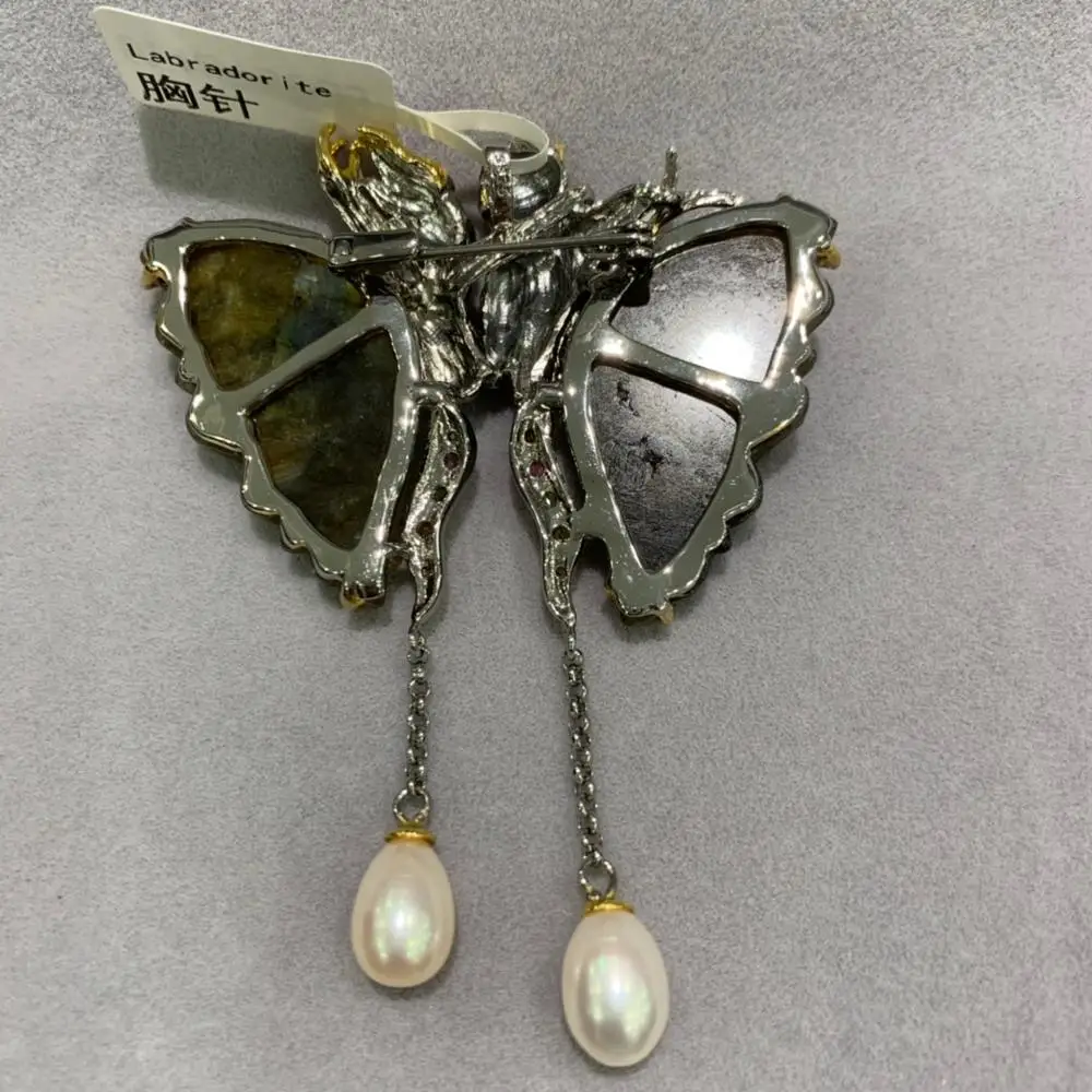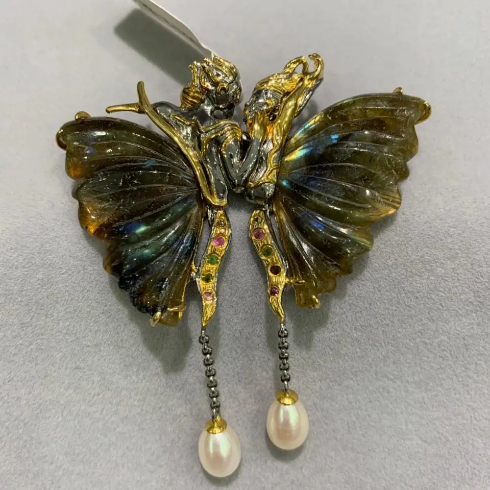 Special Offer الطبيعية شبه حجر كريم بروش فراشة دبابيس و قلادة مزدوجة استخدام 925 فضة الحشرات غرامة النساء مجوهرات فقط 1 Discount 0% Today!