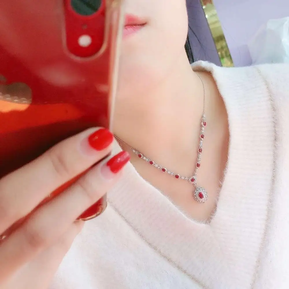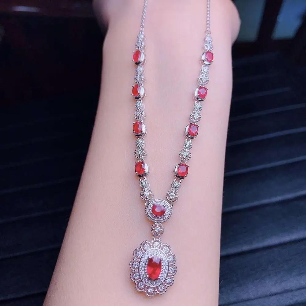 Product Name: زفاف روبي قلادة قلادة المنشأ والطبيعية روبي 925 فضة للنساء مجوهرات
