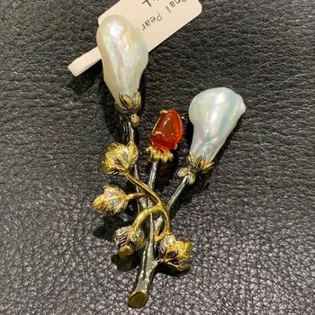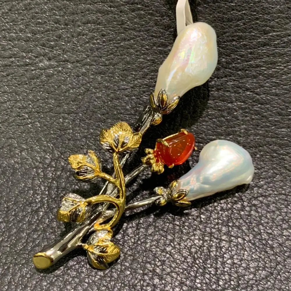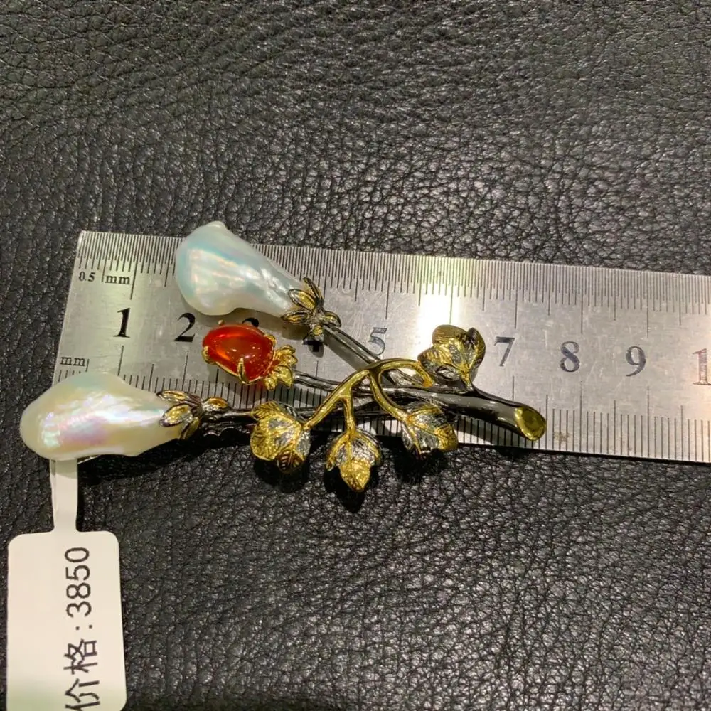 Product Name: الباروك لؤلؤ طبيعي من المياه النقية بروش 925 أقراط متدلية على شكل ورق سترلينج الفضي خمر مجوهرات النساء غرامة شحن مجاني قلادة مزدوجة استخدام