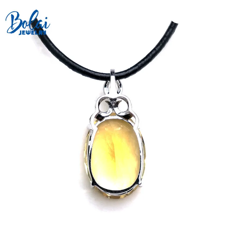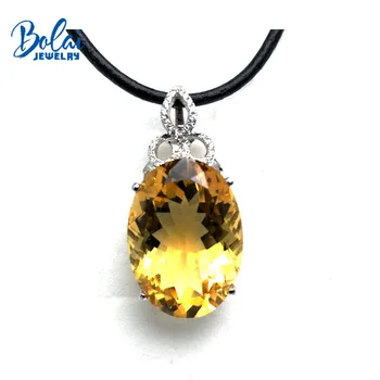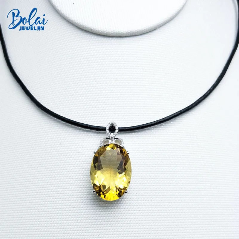 Product Name: Bolaijewelry ، كبير الحجم 19ct الطبيعية سيترين قلادة مع الجلود الحبل قلادة 925 الفضة النساء الذكرى الزفاف حزب هدية