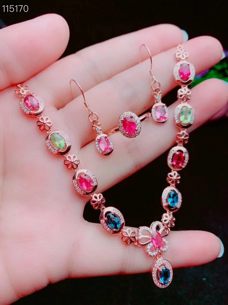 Special Offer KJJEAXCMY غرامة مجوهرات 925 فضة مطعمة تورمالين طبيعي أقراط قلادة عصابة دعوى فتاة فاخرة دعم اختبار Discount 19% Today!