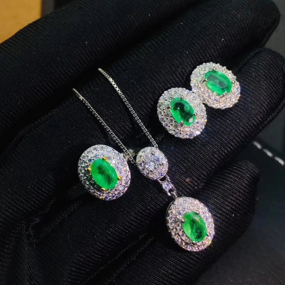 Special Offer KJJEAXCMY غرامة مجوهرات الطبيعية الزمرد 925 فضة المرأة قلادة أقراط الطوق مجموعة دعم اختبار أنيقة رائجة البيع Discount 28% Today!