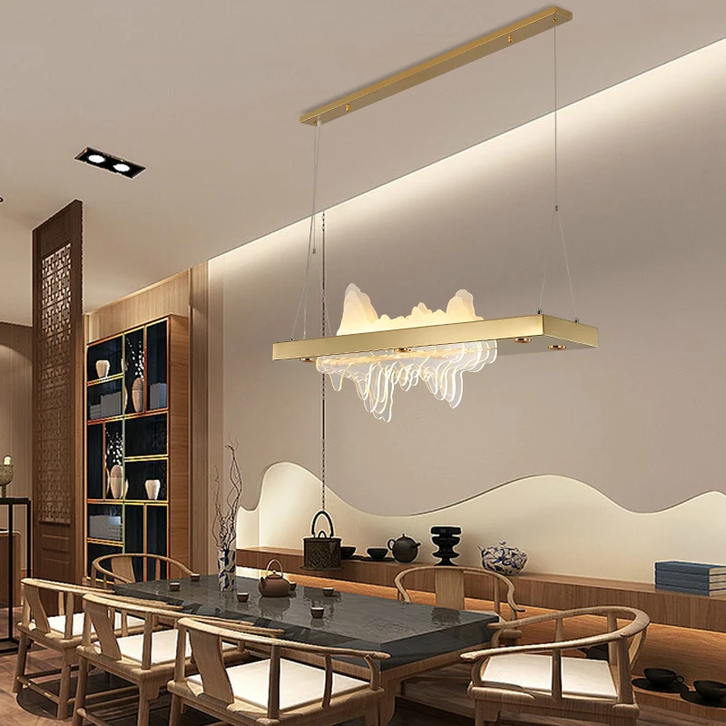 Product Name: الحديثة قلادة Led مصباح الذهب مستطيلة المعادن شنقا ضوء النمط الصيني فندق مكتب الاستقبال مكتب مطعم قلادة أضواء Led