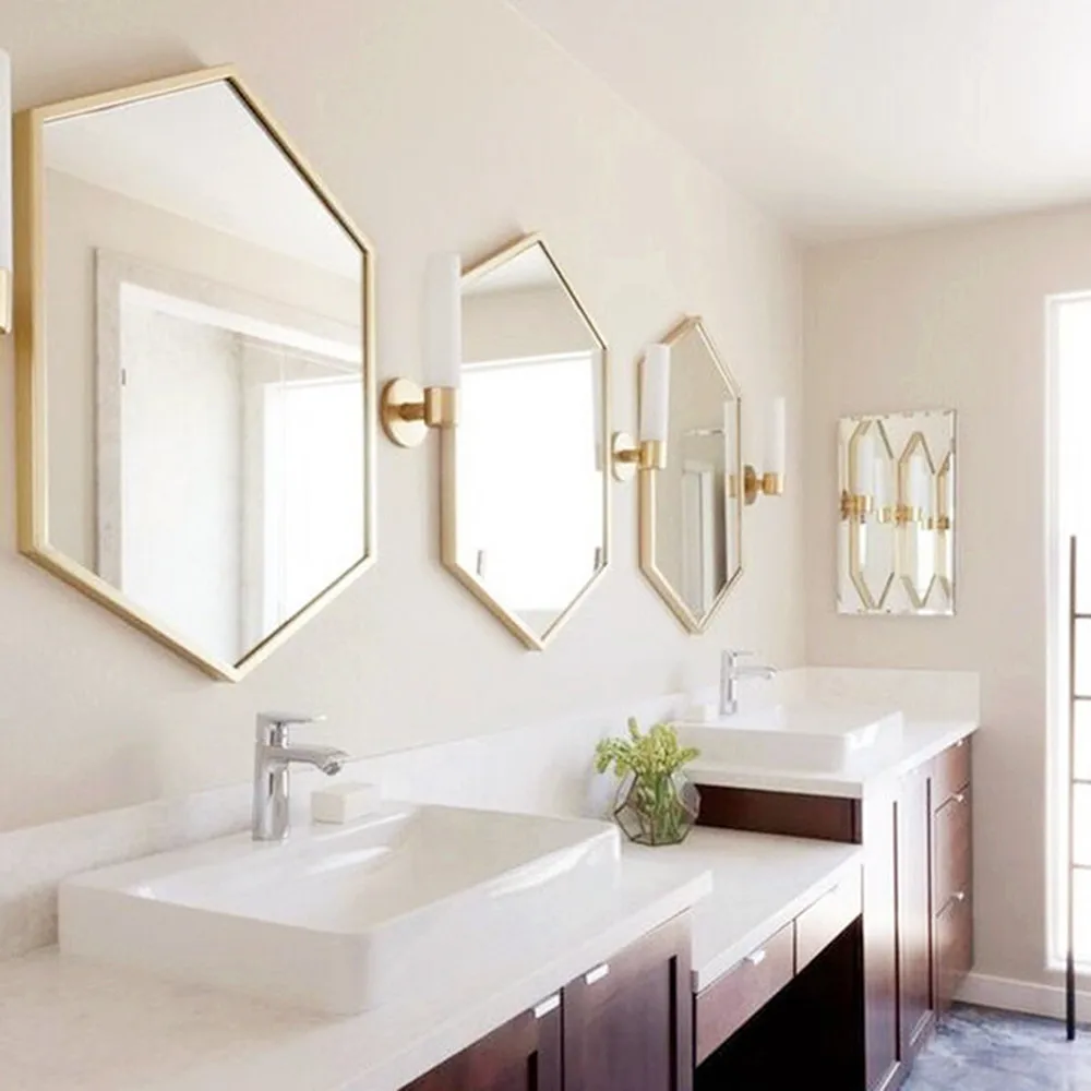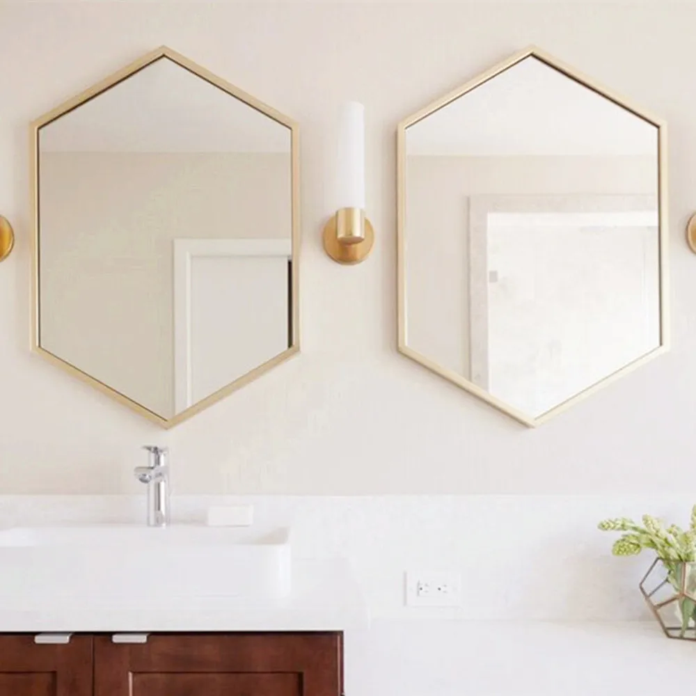 Special Offer الشمال مسدس مرآة مرآة حمام مرآة لوضع مساحيق التجميل الحديد المطاوع المرآة البالونية مرآة الزخرفية الحائط LO681624 Discount 5% Today!