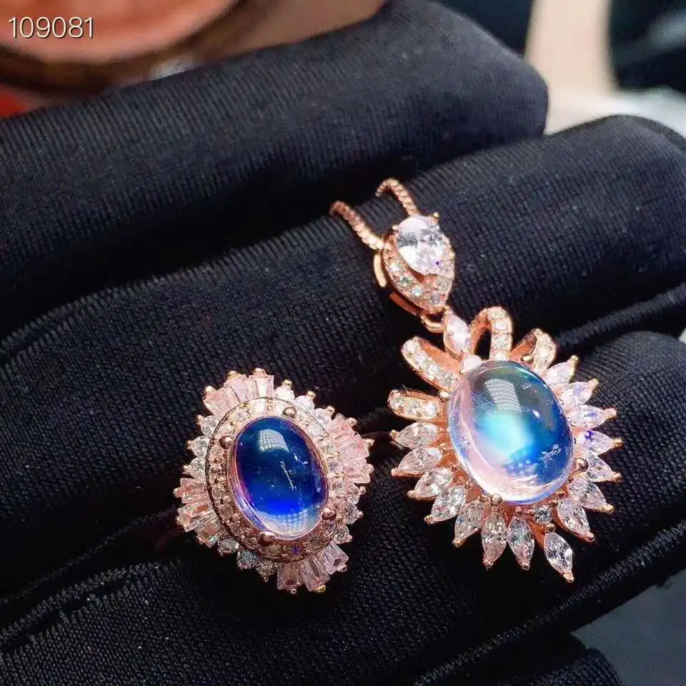 Special Offer ريال الطبيعية Moonstone طقم مجوهرات الحجر القمر الطبيعي الحقيقي 925 فضة 1 قطعة قلادة ، 1 قطعة حلقة Discount 48% Today!