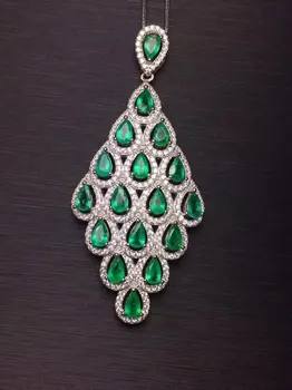Special Offer الطبيعية الخضراء الزمرد قلادة الاحجار الطبيعية أنيقة ذيل الطاووس ريشة قلادة قلادة S925 فضة نساء حزب المجوهرات Discount 18% Today!