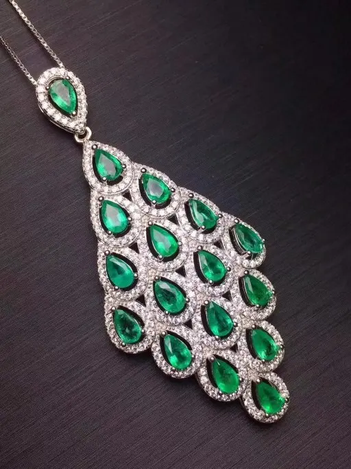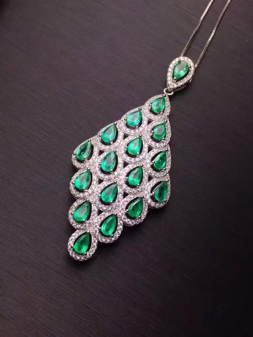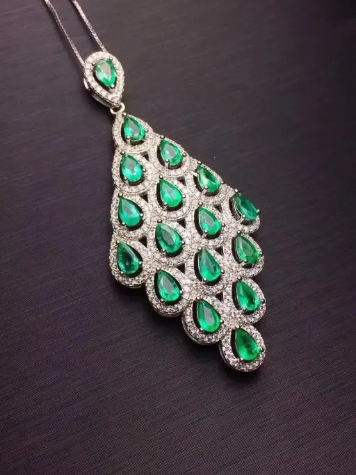 Product Name: الطبيعية الخضراء الزمرد قلادة الاحجار الطبيعية أنيقة ذيل الطاووس ريشة قلادة قلادة S925 فضة نساء حزب المجوهرات