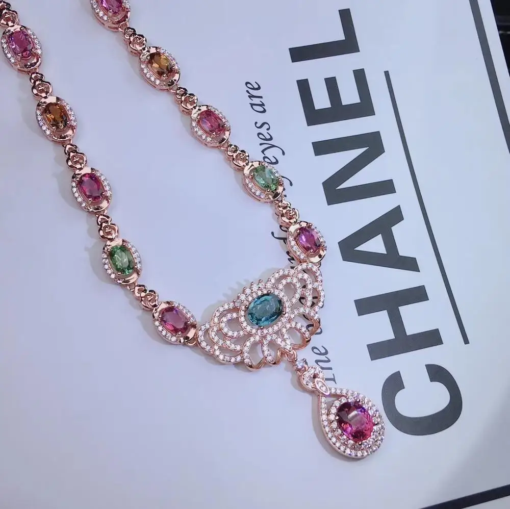 Special Offer الفاخرة الرجعية تاج الطبيعي متعدد الألوان التورمالين قلادة قلادة S925 الفضة الطبيعية الأحجار الكريمة قلادة فتاة هدية غرامة المجوهرات Discount 18% Today!