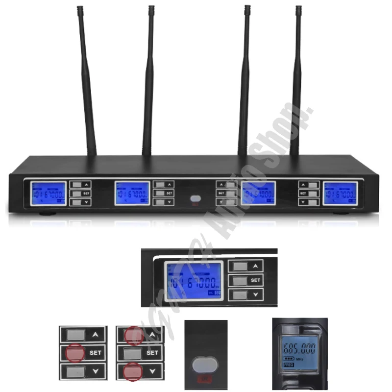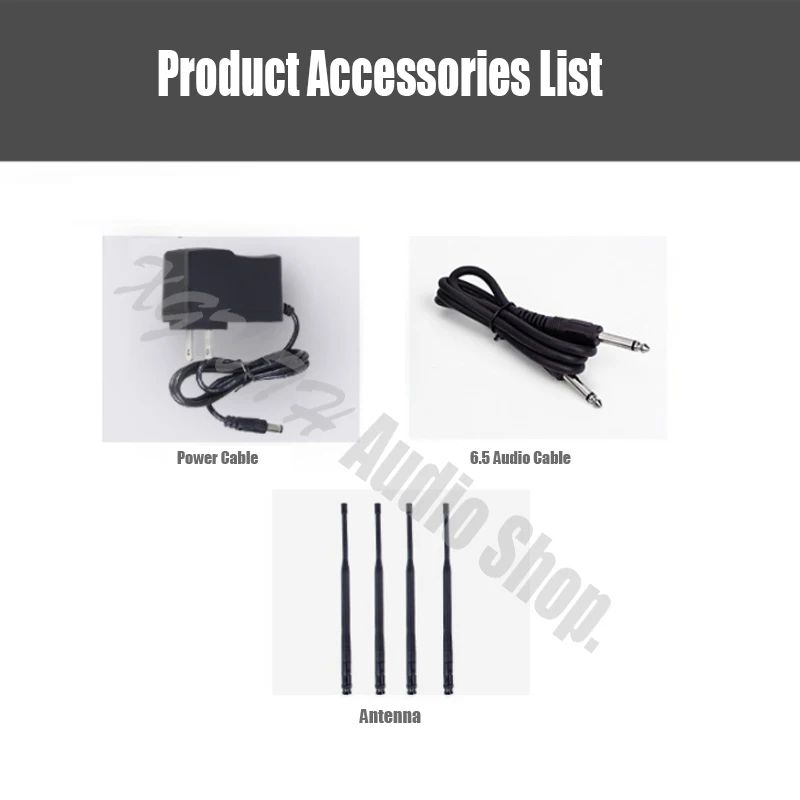 Product Name: UHF 4 قنوات ميكروفون لاسلكي نظام مع 4 Bodypack الارسال 4 سماعة Microfone 1 استقبال الصوت كابل الطاقة محول