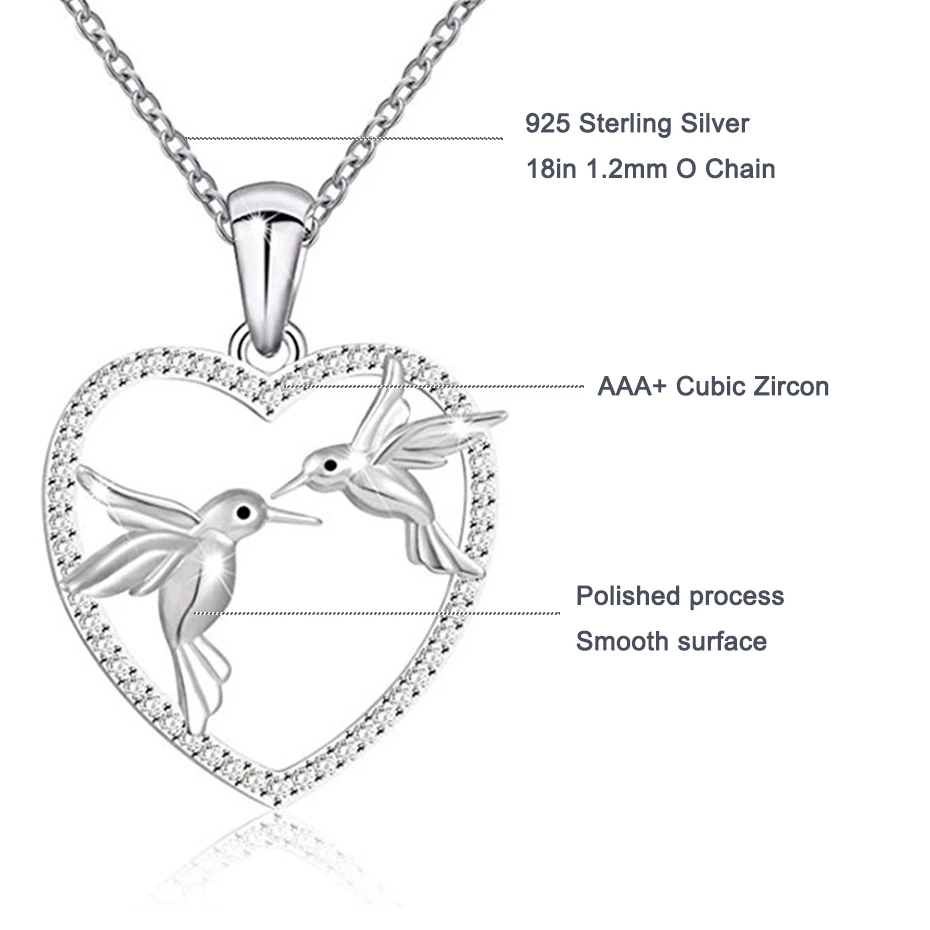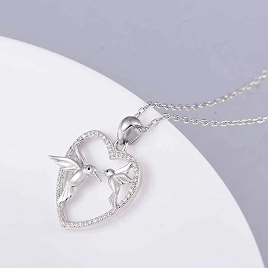 Product Name: YFN 925 فضة القلب مزدوجة الطيور قلادة عقيق فضية اللون سلسلة المرأة 925 عيد الحب هدية الحب مجوهرات امرأة هدية