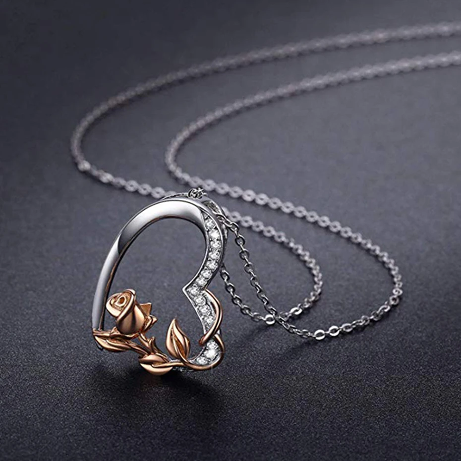 Product Name: YFN 925 فضة قلادة بحلية متدلية على شكل وردة كريستال عقد من حجر الياقوت 925 سلاسل فضية عيد الحب هدية عيد الأم