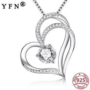 Special Offer YFN 925 فضة القلب قلادة القلائد مكعب الزركون S925 المرأة العصرية مجوهرات عيد الأم هدية عيد الحب هدايا Discount 0% Today!
