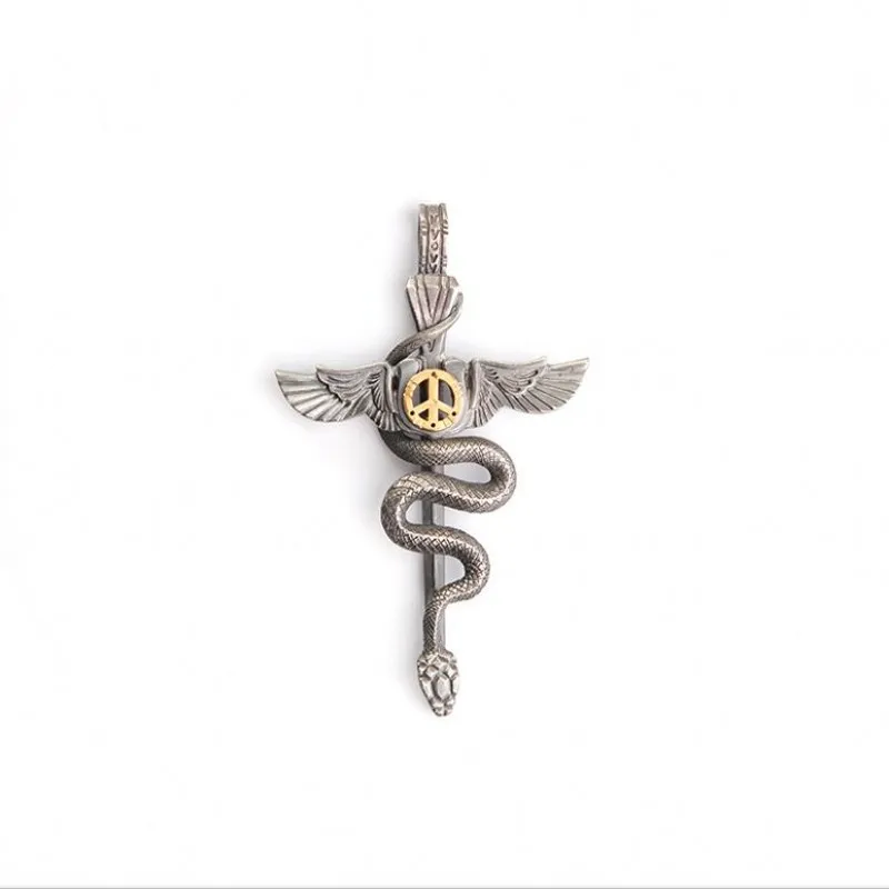 Special Offer 100% ريال S925 فضة السماء السلام رمز الحياة ثعبان الرجعية مزدوجة الجناح ثعبان قضيب قلادة Discount 24% Today!