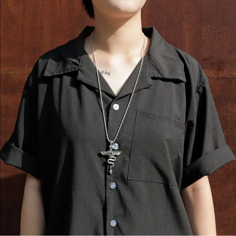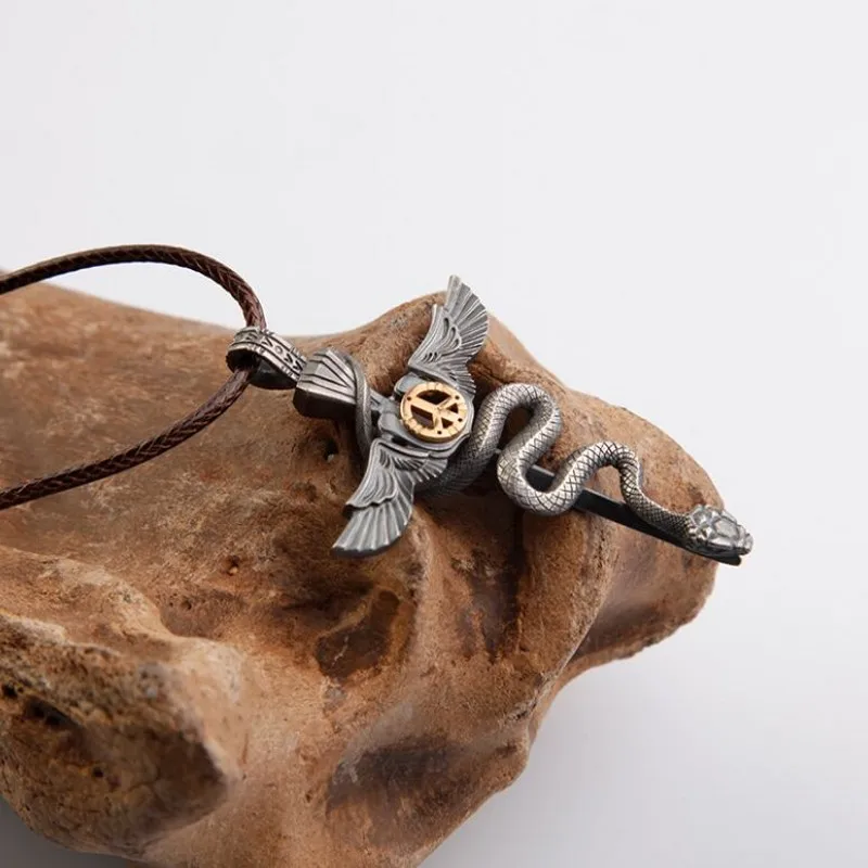 Product Name: 100% ريال S925 فضة السماء السلام رمز الحياة ثعبان الرجعية مزدوجة الجناح ثعبان قضيب قلادة